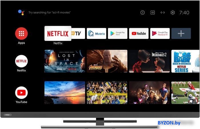 Информация | Дисплей HQLED Дисплей с подсветкой HQLED позволит насладиться максимально чистым и ярким отображением чёрного, белого, красного, зелёного и синего цветов. MEMC Плавное изображение с технологией МЕМС позволит смотреть любимые передачи без разрыва картинки, добавляя кадры в контент с низкой частотой кадров. Технология Far Field Управляйте телевизором без пульта с инновационной технологией Far Field, просто озвучив свой запрос: «Окей, Google, открой приложение EVO». Dolby Atmos Окунитесь в трехмерный звук с технологией Dolby ATMOS, которая добавляет каналы высоты и делает звук трёхмерным как в кинотеатре. DBX-TV Использование цифрового улучшения звука DBX-TV в сверхтонких телевизорах позволяет эффективнее использовать встроенную акустическую систему, звучание становится сопоставимым с динамиками значительно большего размера и мощности. Теперь вы можете насладиться масштабным звуком без дополнительных акустических систем. Технология Chromecast Технология Chromecast позволяет выйти за рамки маленького экрана – теперь вы можете транслировать контент со смартфона, планшета или компьютера на телевизор, в любом приложении поддерживающем встроенную технологию Chromecast для платформы Android TV. Запустите приложение EVO и получите доступ к самым интересным фильмам и сериалам в подборках от редакторов Haier, удобному поиску контента от ведущих российских видеосервисов, а также подаркам и акциям от Haier и партнеров. HDR 10 Телевизоры Haier воспроизводят изображение именно таким, как оно задумано создателями. Технология HDR10 позволяет отразить на экране всю глубину цветов, что способствует высочайшей детализации любой сцены. Для максимального удовольствия от просмотра. Масштабирование разрешения до уровня 4K UHD В телевизорах Haier доступна технология масштабирования изображения в формат, сопоставимый по качеству изображения с 4K UHD. Наилучший результат при таком масштабировании получается при конвертации в 4K UHD изображения формата Full HD и HD. * Качество конвертированного изображения может меняться в связи с разными типами форматов исходного контента. |