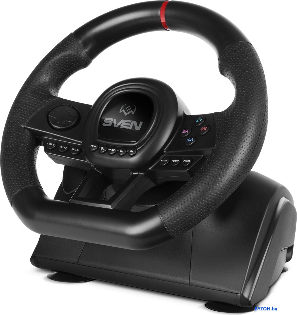 | Информация | - SVEN GC-W650 получил все базовые функции, без которых сложно представить современный игровой руль. В первую очередь, речь идет о виброотдаче — именно она позволяет почувствовать дрожание руля в заносе, смену дорожного покрытия и даже небольшие выбоины на дороге — уровень реалистичности происходящего сразу многократно возрастает. Для того, чтобы руль при этом надежно удерживался руками водителя, на нем предусмотрены специальные резиновые вставки для максимально удобного хвата. - Угол вращения руля может доходить до 270° — хватит не только для быстрого прохождения поворотов, но и для маневрирования на малой скорости при управлении виртуальным грузовиком. Нередко игра позволяет включить сигналы поворота, фары или дворники и так далее — все эти действия можно «повесить» на специальные программируемые кнопки на руле. Также с помощью клавиш на руле можно управлять персонажем или поворотом его головы, вызывать основные игровые меню и так далее. Широкий блок педалей позволит удобно использовать акселератор и тормоз, при этом он плотно и стабильно стоит на полу, не пытаясь «убежать» резких нажатий в самый наряженный момент игры. - Важно отметить, что SVEN GC-W650 способен корректно работать практически в любых играх — от суперсовременных до классических, что стало возможным благодаря поддержке режимов X-Input и D-Input. Список совместимых устройств тоже крайне обширный: PS4 и PS3, XBOX ONE S/X, Nindendo Switch, ПК под управлением Windows 7 и старше… - |
