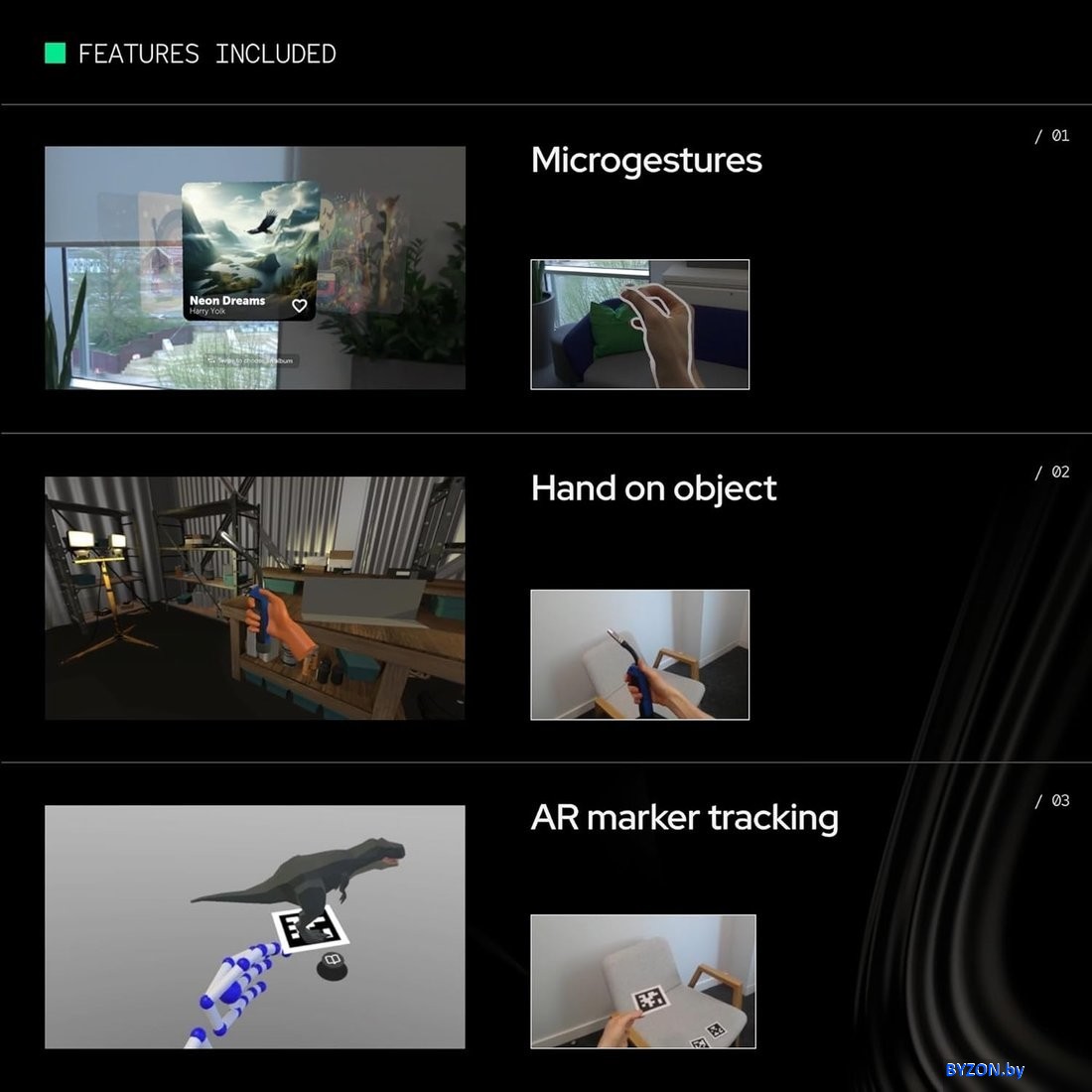 | Информация | - Второе поколение легендарной камеры Ultraleap: Leap Motion Controller 2 позволяет управлять виртуальной средой с помощью собственных рук — без контроллеров и ограничений. Камера стала ещё точнее, компактнее и энергоэффективнее, открывая новые горизонты для взаимодействия в 3D-пространстве. - Расширенный угол обзора и высокая точность: Новая модель может точно отслеживать 27 элементов руки — включая суставы и кости, даже если они частично перекрыты. Это обеспечивает невероятно реалистичное управление и делает любые жесты естественными. - Компактность и совместимость: Камера легко крепится к гарнитурам XR от Varjo, HTC и Pico с помощью специального крепления XR Headset Mount (приобретается отдельно). Она также подходит для использования с ПК, голографическими дисплеями и настольными приложениями. - Поддержка мультиплатформенности: Благодаря фирменному программному обеспечению Gemini, устройство работает с Windows, macOS и Android XR2. Это делает Leap Motion Controller 2 самой универсальной камерой в истории Ultraleap. - Погружение без компромиссов: Идеально подходит для виртуальных миров, проектирования 3D-объектов, работы с интерактивными приложениями. Управление руками становится не просто функцией — это целый новый уровень взаимодействия и ощущений. |