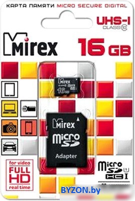 Карта памяти Mirex microSDHC UHS-I (Class 10) 16GB + адаптер [13613-ADSUHS16] - купить в Минске