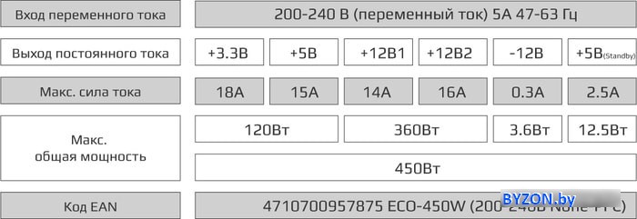 | Комбинированная нагрузка по +12V | 360 Вт |