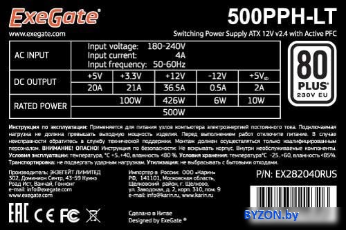 Блок питания ExeGate 500PPH-LT 80 Plus EX282040RUS-S - купить в Минске