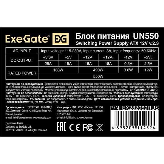 Блок питания ExeGate UN550-PC EX282069RUS-PC - купить в Минске