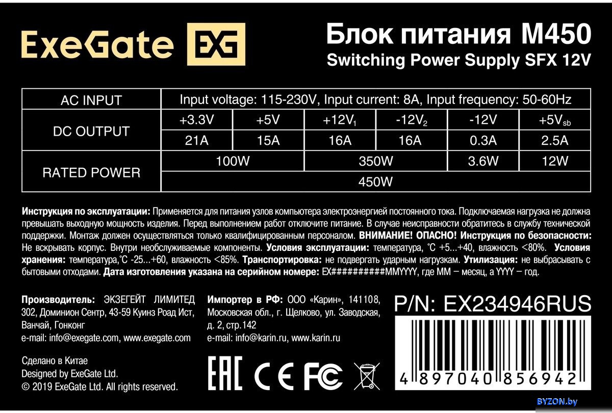 Блок питания ExeGate M450 EX234946RUS - купить в Минске