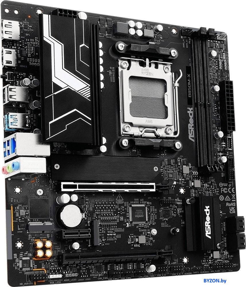 | Информация | - ASRock B850M-X - современная материнская плата формата mATX на чипсете AMD B850, предназначенная для процессоров AMD Ryzen 9000, 8000 и 7000 поколения. Модель выполнена в стильном черном цвете и оборудована мощной 6+1+1 фазной подсистемой питания с радиаторами для эффективного охлаждения, что обеспечивает высокую стабильность работы даже при оверклокинге. - На плате расположены два слота DDR5 с поддержкой ECC/non-ECC небуферизованных планок памяти, профилей Intel XMP и AMD EXPO, максимальный объем оперативной памяти составляет 128 ГБ, а максимальная частота достигает 8200 МГц (OC). Для расширения возможностей предусмотрены 2 слота PCIe x16, 1 слот PCIe x1, а также два разъема M.2 для сверхбыстрых NVMe SSD, включая один с поддержкой PCIe 5.0. - ASRock B850M-X оснащена богатым набором интерфейсов:на задней панели присутствуют 3 порта USB 3.2 Gen1 Type-A, 1 порт USB 3.2 Gen1 Type-C, 2 порта USB 2.0, HDMI 2.1, DisplayPort 1.4, 3 аудиовыхода (3.5 мм), а также гигабитный LAN-порт 2.5 Гбит/с. Предусмотрен внутренний слот для установки модуля Wi-Fi (Key E), поддержка RGB и ARGB подсветки, а также множество разъемов для подключения вентиляторов и других компонентов. - К дополнительным преимуществам платы относятся поддержка быстрой установки драйверов, функция BIOS Flashback для удобного обновления прошивки без процессора и памяти, а также качественная звуковая подсистема на базе Realtek ALC897 с поддержкой 7.1-канального звука и технологией Nahimic Audio. Данная плата отлично подойдет для домашних, рабочих и игровых систем, сочетающих в себе производительность, надежность и универсальность. |