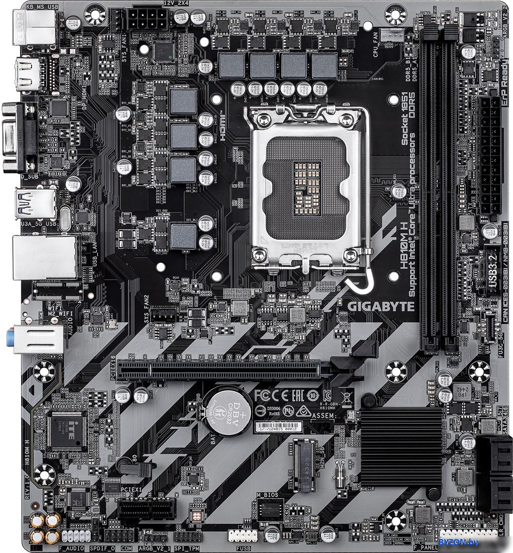 | Информация | -Материнская плата Gigabyte H810M H — это компактное и мощное решение в форм-факторе mATX, предназначенное для работы с процессорами Intel Core Ultra, используя новый сокет LGA1851 и чипсет Intel H810. Она поддерживает оперативную память DDR5 с максимальной частотой 6400 MT/s и объемом до 128 ГБ в двухканальном режиме, обеспечивая высокую скорость работы системы. -Для расширения функционала предусмотрены один слот PCI Express x16 с поддержкой PCIe 4.0 и один слот PCI Express x1 (PCIe 3.0), а также один разъем M.2 с интерфейсом PCIe 4.0 x4/x2 и четыре разъема SATA 6 Гбит/с. Плата поддерживает RAID-массивы уровней 0, 1, 5 и 10 для SATA-накопителей. -На задней панели представлены 5 портов USB 2.0, 1 порт USB 3.2 Gen1 Type-A, видеовыходы HDMI 2.1 и VGA (D-Sub), разъем PS/2 для подключения периферии, а также гигабитный Ethernet-порт. Аудиоподсистема включает в себя три разъема 3.5 мм jack с поддержкой 7.1-канального звука, основанного на встроенном аудиокодеке. -Дополнительные функции включают два разъема для вентиляторов корпуса, один разъем для охлаждения процессора, два разъема для адресной RGB-подсветки 5В, а также встроенные интерфейсы для подключения передней панели и устройств расширения. Материнская плата предназначена для систем на базе Windows 11 и Windows 10, предлагая стабильную и надежную платформу для сборки современных ПК. |