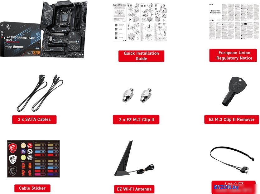 | Комплектация | - два кабеля SATA - 2 винта EZ M.2 Clip II - EZ M.2 Clip II экстрактор - набор стикеров - EZ Wi-Fi антенна - 1-2 EZ кабель - документация |