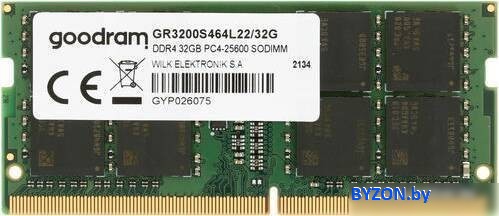 Оперативная память GOODRAM 32ГБ DDR4 SODIMM 3200 МГц GR3200S464L22/32G - купить в Минске