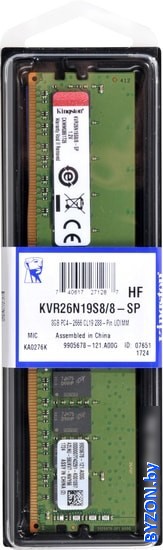 Оперативная память Kingston ValueRAM 8GB DDR4 PC4-21300 KVR26N19S8/8 - купить в Минске
