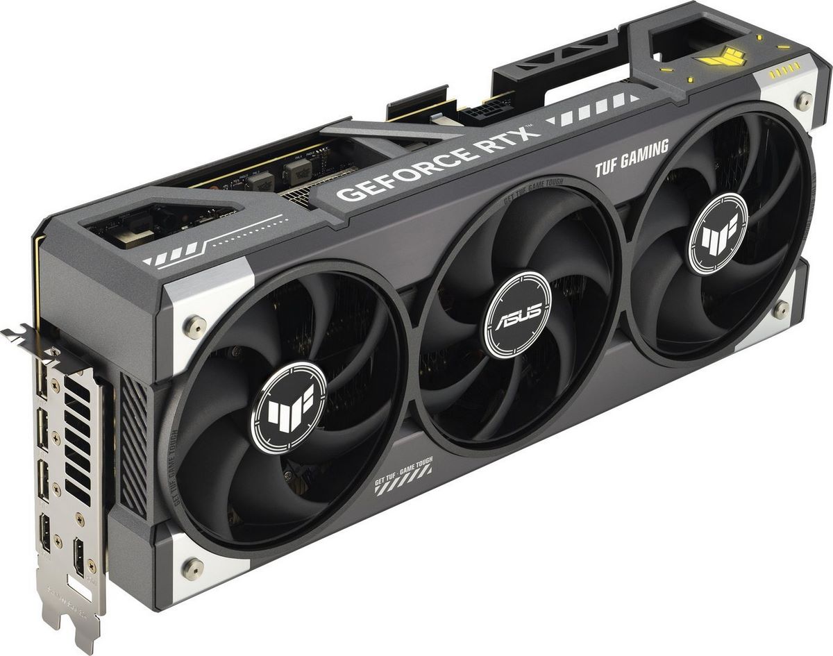 | Информация | TUF Chokes & MOSFETs Certified military-grade TUF chokes and MOSFETs deliver rock-solid power to the GPU, which can help improve system stability. TUF Capacitors TUF 5K black metallic capacitors provide 52% wider temperature tolerance and a 2.5X longer lifespan than standard capacitors. Phase-Change GPU Thermal Pad By melting to effectively fill the gaps between the GPU and the thermal module, a premium phase-change GPU thermal pad provides superior thermal conductivity and enhanced heat dissipation, ensuring optimal performance and longevity for graphics cards under heavy loads. Protective PCB Coating A protective conformal coating envelops the circuit board to help protect against short-circuits caused by moisture, dust or debris. Dual-ball Fan Bearings Dual-ball bearings offer an extensive lifespan of up to 80,000 hours, double the longevity of sleeve bearings and surpassing fluid dynamic bearings. This helps ensure long-lasting, reliable and quiet cooling. MaxContact Design MaxContact is a special ASUS manufacturing process that effectively expands the surface area of the heat spreader that sits atop the GPU by 5%, compared to traditional designs. This improves temperatures by up to 2°C, in concert with an extensive heatsink array and powerful Axial-tech fans. 12 Heatpipes & Vapor Chamber A vapor chamber and jumbo-size heatsink with 12 heatpipes efficiently soaks up heat from the GeForce RTX 5090 GPU, helping to ensure premium performance in a variety of scenarios. Axial-tech Upgrades Axial-tech fans spin on dual-ball bearings and propel up to 23% more air than standard fans. New Directions The two outer fans spin counterclockwise to reduce turbulence and enhance air dispersion. All three fans stop when GPU temps are below 50°C, for quieter operation during light tasks. They restart above 55°C, following a speed curve that balances performance and acoustics. Vented Exoskeleton A high-quality diecast shroud and aluminum backplate help prevent PCB flex and feature large vents to further increase heat dissipation. ASUS GPU Guard & Bracket ASUS GPU Guard applies adhesive to secure all four corners to reduce the risk of cracks, while a GPU bracket helps ensure uniform mounting pressure and extra stability. Auto?Extreme Technology An automated manufacturing process that sets new standards in the industry by allowing all soldering to be completed in a single pass. This reduces thermal strain on components and avoids the use of harsh cleaning chemicals, resulting in less environmental impact, lower manufacturing power consumption and a more reliable product overall. |
