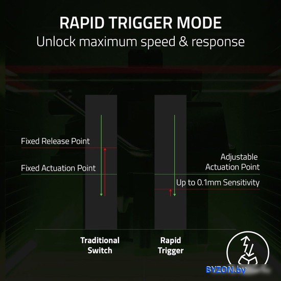 | Информация | ??Текст описания переведен при помощи искусственного интеллекта. ??Текст описания переведен при помощи искусственного интеллекта. ? АНАЛОГОВЫЕ ОПТИЧЕСКИЕ ПЕРЕКЛЮЧАТЕЛИ GEN-2 — Максимальная точность и быстрота реакции с передовыми переключателями, оснащенными Рапид Триггером для ультра-быстрых повторяющихся вводов, регулируемым диапазоном активации от 0,1 до 4,0 мм и ресурсом в 100 миллионов нажатий клавиш ?. RAPID TRIGGER – Шаг вперед от традиционных механических или оптических клавиатур для достижения наиболее отзывчивых и точных вводов; сбросьте клавиши при малейшем подъеме пальца и почувствуйте преимущество в скорости, особенно полезное для перемещения в соревновательных играх FPS ?. QUICK ONBOARD ADJUSTMENTS — Сделайте точные, мгновенные настройки высоты активации или чувствительности Рапид Триггера с визуальной помощью встроенного светодиодного массива, сохраняя настройки на клавиатуре без необходимости использования программного обеспечения ?. ?? ДУАЛЬНЫЕ МОДИФИКАТОРНЫЕ КЛАВИШИ — Нижние правые модификаторные клавиши на клавиатуре также служат стрелками при нажатии, обеспечивая удобную навигацию, которая обычно доступна только на более крупных клавиатурах ?. |