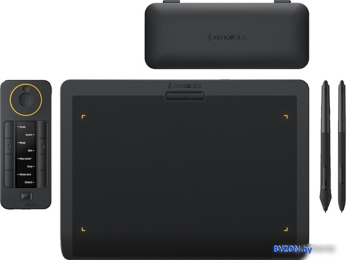 | Информация | Поставляется с двумя беспроводными перьями. Перья отличаются размером и толщиной. У тонкого пера присутствуют 2 дополнительные кнопки, а у более крупного пера их 3 — они подходят для художников, работающих с 3D-графикой. Оба пера имеют функцию ластика и чувствительность к нажатию (8192 уровней), могут распознать наклон и при работе срабатывают практически без задержек. Quick Keys предлагает пять наборов из восьми клавиш для 40 настраиваемых сочетаний клавиш (для каждого приложения). Пульт оснащен OLЕD-дисплеем для отображения назначения каждой клавиши и может использоваться в портретном или ландшафтном режиме. |