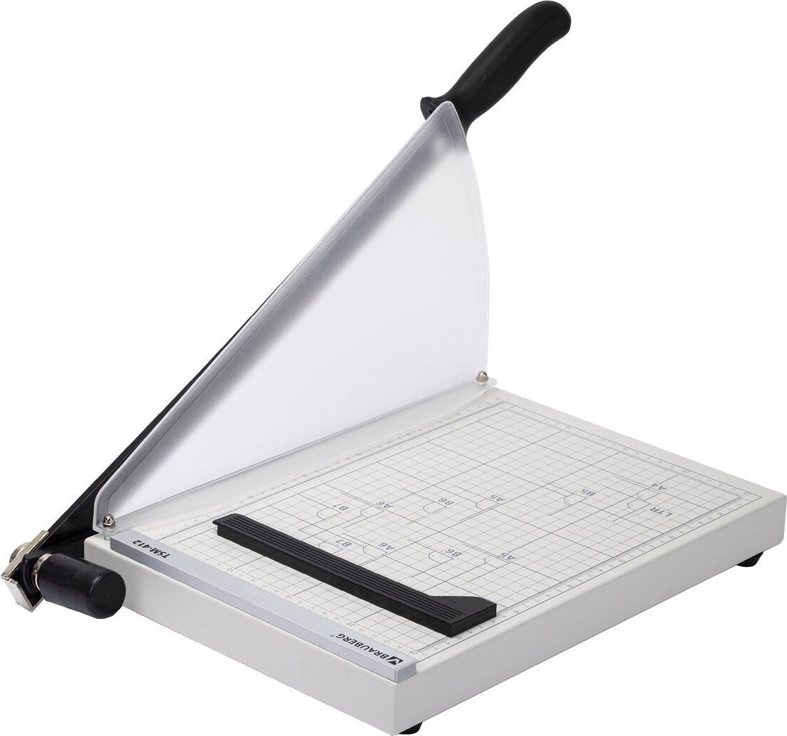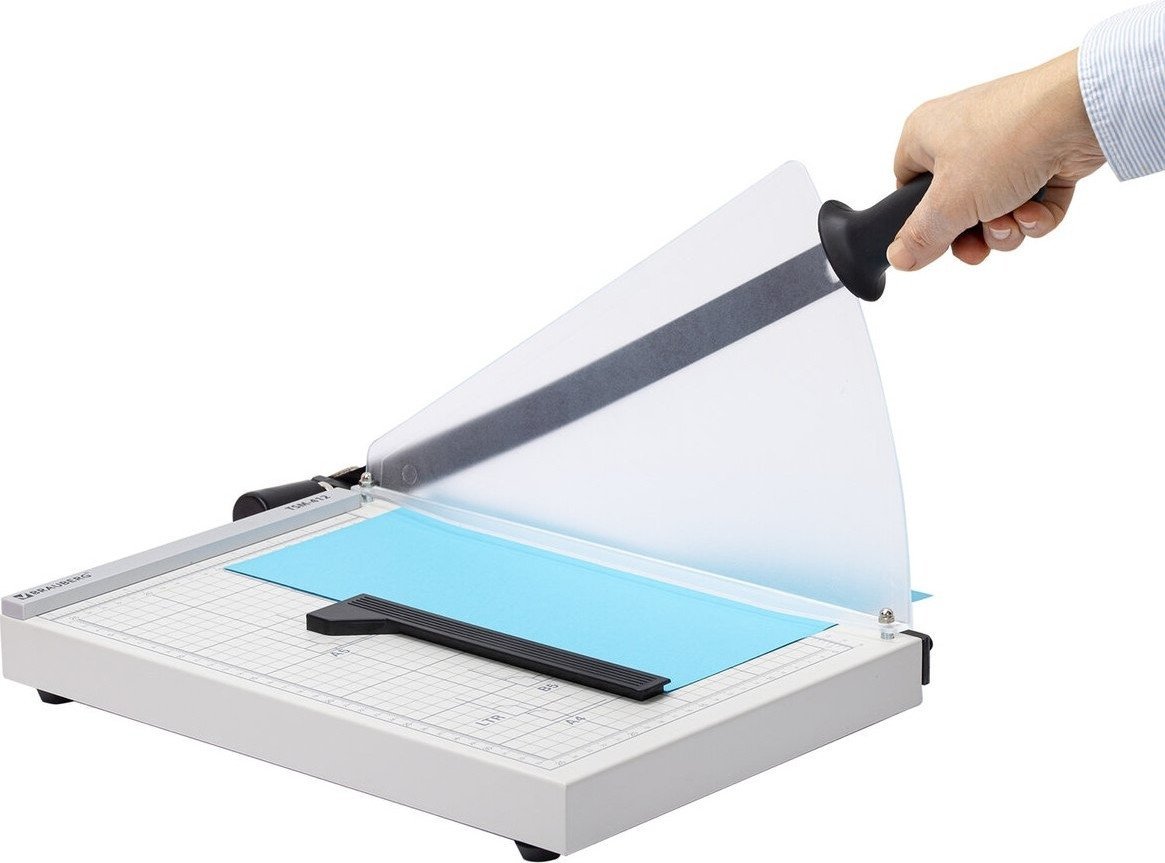 | Информация | Сабельный резак для бумаги подходит для домашнего и офисного применения. Позволяет одновременно разрезать до 12 бумажных листов формата А4. Оснащен безопасным лезвием, регулируемым магнитным упором и прижимом для бумаг. Рукоятка анатомической формы препятствует соскальзыванию руки, а специальное крепление для рукояти зафиксирует её в закрытом положении и предотвратит непреднамеренное поднятие. В резак встроен возвратный механизм, который автоматически поднимает лезвие вверх, что значительно экономит силы при длительном использовании. Пластиковый защитный экран высотой 22 см сделает работу за резаком максимально безопасной. Удобная разметка рабочей поверхности позволяет точно наметить линию реза. Длина реза составляет 340 мм. Также имеются уголки для форматов А4, B5, А5, B6, B7. Резиновые ножки вкупе с прочным металлическим основанием предотвращают скольжение по рабочему столу во время эксплуатации. С сабельным резаком для бумаги выполнять повседневные задачи станет проще, чем когда-либо. Приобретите его и убедитесь в этом сами. |