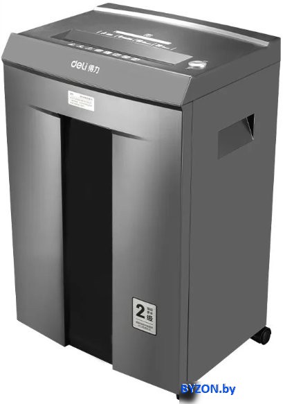 | Информация | Шредер Deli 9919 (уничтожитель бумаги) - отличное решение для малых и средних рабочих групп, численностью от 10 до 50 человек. Измельчитель бумаги способен обеспечивать до 60 минут непрерывной работы при скорости 2,5 м/мин, выполняя нарезку фрагментов размером 1х5 мм (12474 фрагментов на лист A4) и уровнем секретности P-7 (стандарт DIN 66399). Входное отверстие 220мм. За один раз шредер уничтожает до 8 листов формата А4 стандартной плотности (70–80 гр./м2). Устройство позволяет перерабатывать не только бумагу, но и скрепки, пластиковые карты, включая банковские карты, различные ID-карты, а также имеет отдельный слот для уничтожения CD/DVD дисков. Объем корзины составляет 30 литров. Для удобства отслеживания заполняемости корзины предусмотрено прозрачное окошко с фронтальной стороны устройства. Шредер оснащен современным двигателем с пониженным уровнем шума, а также дополнительно обладает автостопом при заклинивании и функцией автоматического реверса. Наличие колес обеспечивает удобство перемещения и мобильность внутри офиса. Уровень шума составляет менее 60 дБ. |