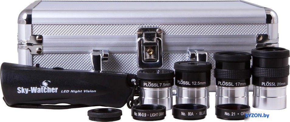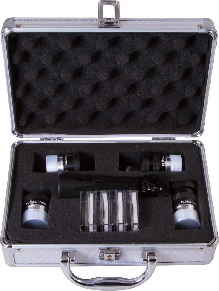 Информация | - Набор аксессуаров Super Plossl — идеальное решение для любителей астрономии, стремящихся к качественным наблюдениям Луны и планет. С его помощью вы сможете глубже изучить объекты Солнечной системы и увидеть больше деталей на поверхности Луны, в атмосфере Юпитера и на кольцах Сатурна. Все оптические аксессуары имеют посадочный диаметр 1,25". - Окуляры Super Plossl обеспечивают отличный баланс между оптическими характеристиками и ценой, что делает их незаменимыми для астрономов-любителей. Эти аксессуары выбирают опытные наблюдатели, которые ценят четкость и контрастность изображения без искажений. Каждый окуляр оснащен четырехлинзовой системой с многократным просветлением, а поле зрения достигает 52°. Резиновые наглазники добавляют комфорт во время наблюдений, а фактурные резиновые вставки на корпусах длиннофокусных окуляров обеспечивают надежный захват. - В набор входят светофильтры, которые значительно увеличивают контрастность изображения. С их помощью вы сможете более детально исследовать лунную поверхность и особенности планетных дисков. Также в комплекте имеется небольшой светодиодный фонарик, который станет полезным дополнением для ночных наблюдений. - Не упустите возможность улучшить свои астрономические наблюдения с помощью этого качественного набора! |