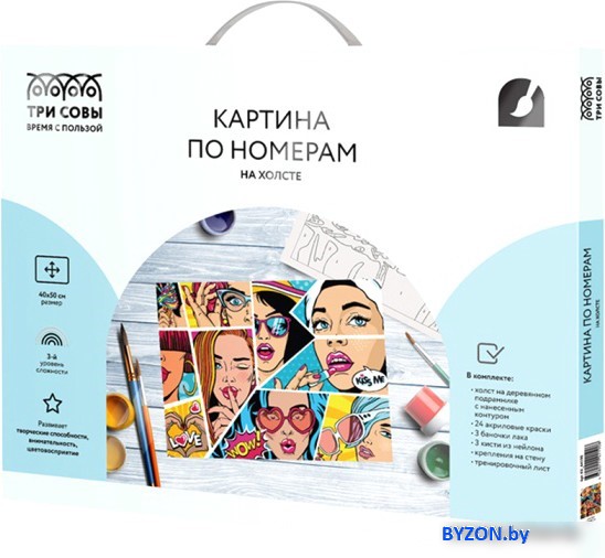 Картина по номерам Три совы Wow. Comics КХ_44190 - купить в Минске