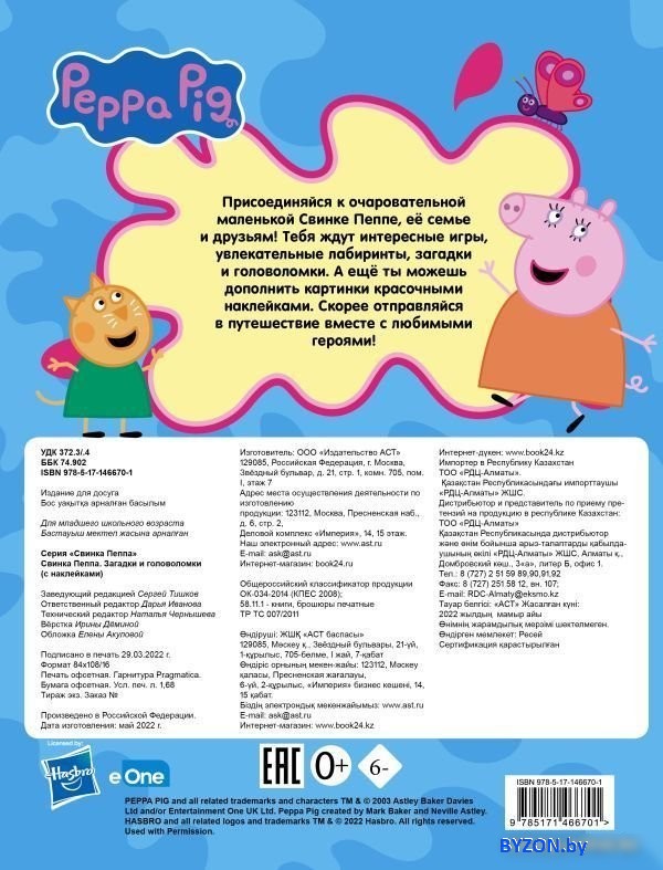 Книга издательства АСТ. Свинка Пеппа. Загадки и головоломки (с наклейками) - купить в Минске