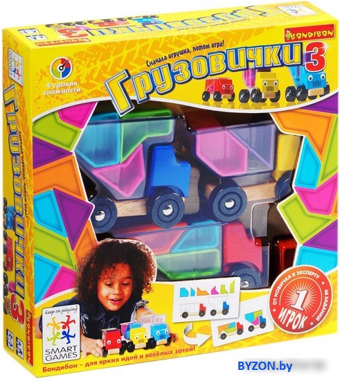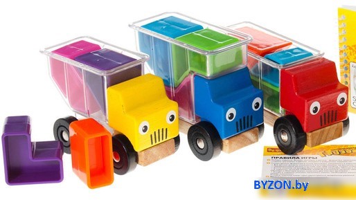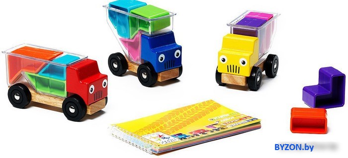 | Информация | Самый первый в жизни собственный грузовой автопарк. Кавалькада глазастых грузовичков отправляется в дальнее путешествие. Но как загрузить в прозрачный кузов все эти разноцветные детали причудливых форм, чтобы не осталось пустого места? Вот это задачка для юного автомобилиста! Малыши смогут просто играть с грузовичками, складывая и выкладывая детали-формочки, а дети постарше научатся выполнять задания этой головоломки, компактно заполняя кузова грузовичков. И очень может быть, что выполняя увлекательные задания по карточкам, Ваши юные «грузоперевозчики», даже не догадаются, что не просто играли, но решали сложные инженерные и логистические задачи. Над заданиями уровня "мастер" интересно поломать голову не только малышам, но и школьникам. |