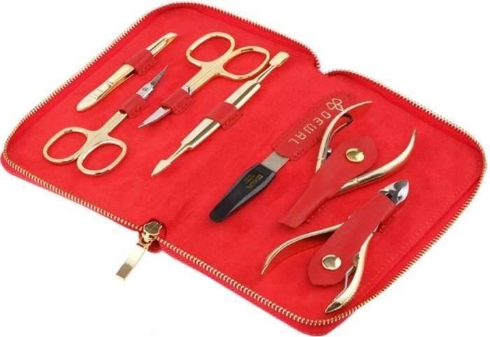 | Комплектация | • ножницы для кутикулы — углеродистая сталь, никелированное покрытие, 9 см. • ножницы для ногтей — углеродистая сталь, никелированное покрытие, 9 см. • кусачки для кутикулы — нержавеющая сталь, никелированное покрытие, 10,5 см. • кусачки для ногтей — нержавеющая сталь, никелированное покрытие, 10,5 см. • пилка металлическая — углеродистая сталь, хромированное покрытие, 12,5 см. • пинцет скошенный — нержавеющая сталь, никелированное покрытие, 8 см. • шабер двусторонний — нержавеющая сталь, никелированное покрытие, 12 см. |