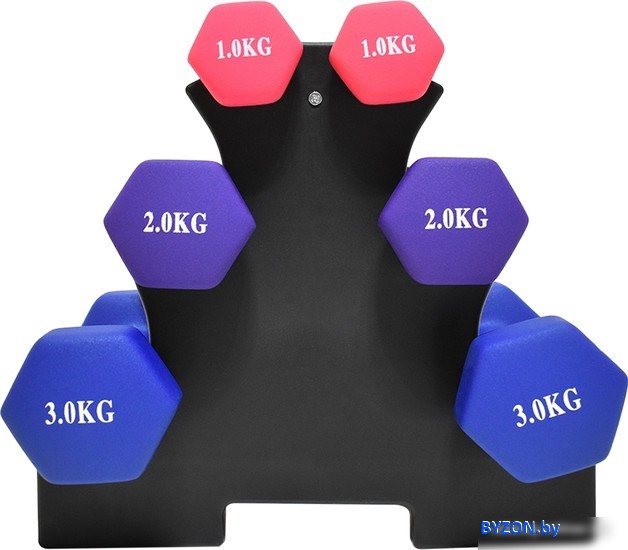Гантельный ряд Atlas Sport Fitnes 12 кг с подставкой (2x1кг+2x2кг+2x3кг) - купить в Минске