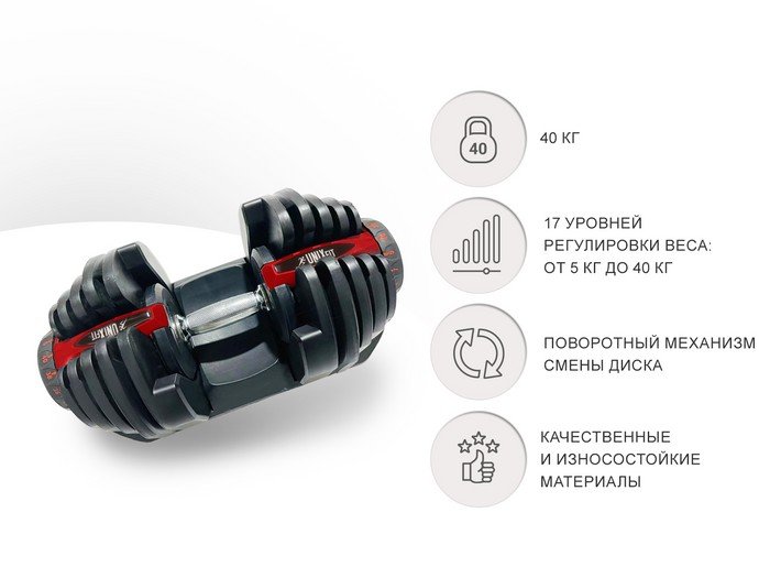 | Информация | ? Регулировка веса от 5кг до 40кг ? Удобная система изменения нагрузки ? Идеально подходит для разнообразных упражнений ? Высококачественный материал ?? Возможность увеличения веса до 40кг |