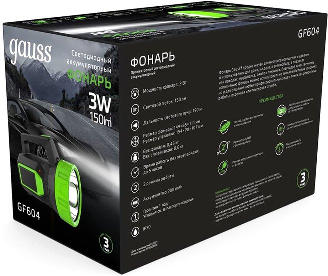 Комплект поставки | - фонарь; - сетевой шнур для зарядки от розетки 0,6м; - ремень для переноски 1м; - паспорт изделия. |