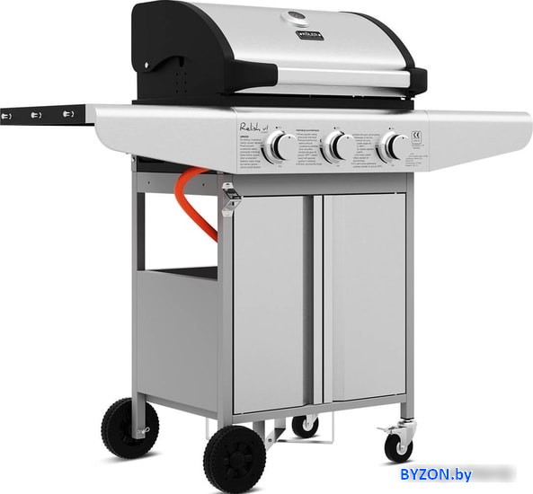 Код товара: 2410048 Рейтинг: 443 10| гриль-решетка, сталь, крышка, столики, полка для дров (принадлежностей), колеса, 59x127x113 см