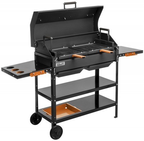 Код товара: 4027048 Рейтинг: 275 10| сталь (3 мм), крышка, столики, полка для дров (принадлежностей), колеса, 166.5x48.4x105.2 см