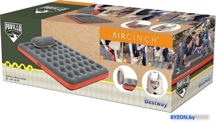 | Информация | Особенностью данной модели является многофункциональная подушка, которая входит в комплект. Помимо использования подушки по прямому назначению, ее можно использовать как насос, с помощью которого можно надувать матрас, а также в качестве сумки для переноски матраса. |