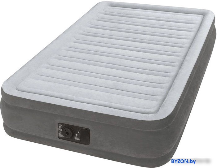 | Информация | Полутороспальная надувная кровать. Новая модель надувной кровати серии Intex Comfort Plush Mid Rise Airbed обеспечивает повышенный комфорт и удобство использования. Кровать изготовлена из выскокачественного винила серого цвета. Верхняя часть надувной кровати имеет покрытие по своим характеристикам напоминающее велюр, мягкое и приятное на ощупь, которое не дает постельному белью соскальзывать. Необычайно удобная полутороспальная надувная кровать Intex поможет полноценно отдохнуть даже после самого трудного дня. Особенность этой надувной кровати заключается в поддерживающей системе, которая создает максимально комфортные условия для отдыха. Внутренняя конструкция с продольными перегородками защищает от раскачивания и сделает сон максимально комфортным. Встроенный электронасос 220В позволяет надуть кровать всего за 2 минуты. В комплекте сумка для хранения и переноски, инструкция на русском языке. |