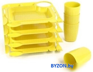 | Состав набора | - стаканы для напитков (4 шт.) - тарелки с отдельными секциями (4 шт.); - ложки /вилки /ножи |
