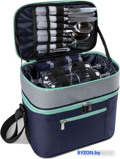 | Информация | ? Изотермическая сумка-холодильник ? Размер (ДхШхВ): 30х18х27 см ? Вес нетто: 1,04 кг ? Объем: 7 л ? Материал: 600х300D полиэстер ? Количество предметов в сумке на 4 персоны: 21 штука (ножи, вилки, ложки, бокалы, салфетки,штопор) Набор для пикника Green Glade T3306 - незаменимая вещь для отдыха на природе и в дальних поездках. Включает в себя изотермическую сумку-холодильник размером 30х18х27 см и весом 1,04 кг. Объем сумки составляет 7 л, а материал изготовления - 600х300D полиэстер. В комплекте 21 предмет для 4 персон: ножи, вилки, ложки, бокалы, салфетки и штопор. |
