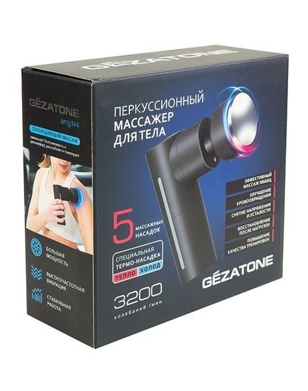 | Информация | Аппаратный перкуссионный массаж – проверенное средство для восстановления нормального тонуса мышц. Частые постукивающие движения «разбивают» триггеры, снимают спазмы с перенапряженной мускулатуры, повышают тонус ослабленных мышц, восстанавливая равновесие и подвижность тела. Восстанавливают кровообращение и лимфодренаж, улучшая обменные процессы в тканях и возвращая хорошее самочувствие. А портативный перкуссионный массажер AMG144 Gezatone позволяет проводить такой массаж самостоятельно в любое время. С какими проблемами справляется массажер-пистолет AMG144 Ударный массаж – прекрасное решение при: Возникновении крепатуры, перенапряжения, болезненности в мышцах после спортивных тренировок и усиленных физических занятиях Зажатости, скованности из-за нарушения осанки, длительных статических поз с повышенной нагрузкой на отдельные группы мышц Атрофии мышц вследствие травм, долгой болезни Гипертонусе мышц из-за стресса, возникновении тянущих болей в так называемых стресс-зависимых зонах (область шеи и плеч, верхняя треть спины) Недостаточных спортивных показателях, ограничении диапазона движений у спортсменов Перкуссионный массаж восстановит нормальный тонус и эластичность мышц, поможет забыть о болях, повышенной усталости и утомляемости. Перкуссионный массажер-пистолет AMG144 Жезатон оценят: Бодибилдеры, атлеты и все спортсмены, для подготовки мышц к тренировкам, восстановления после усиленных нагрузок, повышения личных достижений Люди физического труда и офисные сотрудники для быстрого восстановления подвижности мышц, укрепления мускулатуры, снятия болей Те, кто столкнулся с необходимостью реабилитации после травм и долгого постельного режима Уставшие от напряженного графика жизни, стрессовых ситуаций и связанных с этим перенапряжением Массажисты и тренеры, которые регулярно сталкиваются с перенапряжением мышц у своих клиентов АМГ 144 весит совсем немного и упакован в удобный кейс, он не занимает много места при хранении и транспортировке. Принцип действия перкуссионного массажера: Ударная высокочастотная вибрация воздействует на ткани с заданной амплитудой. Серия глубоко проникающих ударов «разбивает» плотные гиперспазмированные участки мускулатуры, приводит ее в нормотонус. Ликвидация «зажатостей» улучшает кровоснабжение и дренаж проблемных участков, ткани получают больше питания и кислорода, ускоряется выведение токсинов и молочной кислоты, восстанавливается нормальная работа на клеточном уровне. Мышцы становятся эластичнее, повышается их природная подвижность и выносливость, расширяется двигательный диапазон. 5 насадок AMG144 Круглая насадка Предназначена для проработки больших и средних мышечных структур. Насадка «Вилка» Удобно применять на околопозвоночных мышцах, шеи и трапеции, для воздействия на ахиллово сухожилие и икроножные мышцы. Конусовидная насадка «Пуля» Создана для разбивания триггерных точек, прицельного воздействия на болезненные малые зоны Круглая плоская насадка Универсальная, для релаксирующего массажа любых групп мышц. Насадка «Холод-Тепло» Насадка с металлической поверхностью и температурным воздействием в диапазоне от 10 до 45 градусов. Тепло подготавливает мышцы к нагрузкам, помогает быстрее расслабить спазмированные участки и унять боль. Более низк