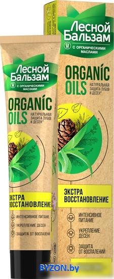 Информация | Активируй силу масел и встряхни свой привычный уход за полостью рта! Лесной Бальзам представляет первую серию средств с органическими маслами для интенсивного восстановления и защиты зубов и дёсен с первого дня. Зубная паста Лесной бальзам Экстравосстановление с органическими маслами и алоэ поддерживает здоровье десен, сохраняет чистоту полости рта и свежесть дыхания в течение дня. Благодаря высокому содержанию масел, в том числе кедрового, масла мяты и органического масла лаванды с повышенными антибактериальными и питательными свойствами, зубная паста обеспечивает натуральную защиту от бактерий и поддерживает иммунитет полости рта. |