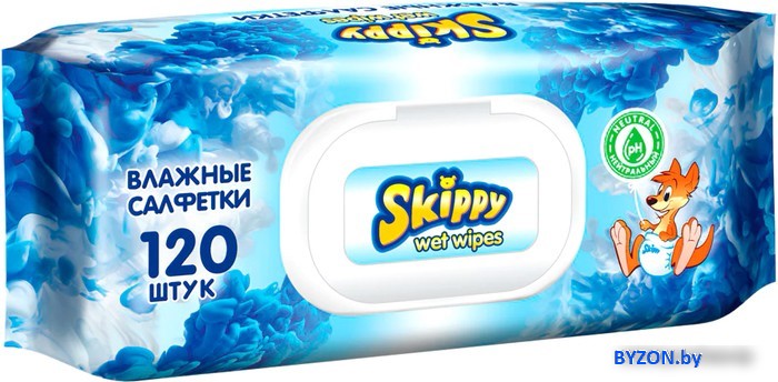 Влажные салфетки Skippy Wet Wipes с клапаном (120 шт) - купить в Минске