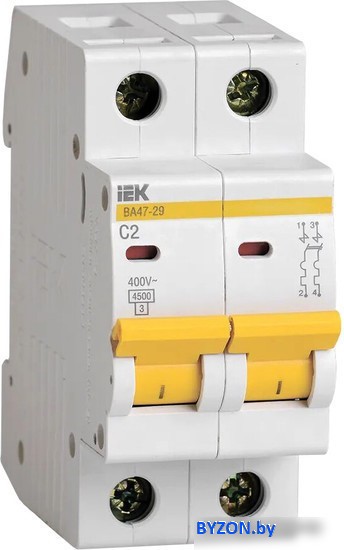 Выключатель автоматический IEK ВА 47-29 2А 2P 4.5кА С MVA20-2-002-C - купить в Минске
