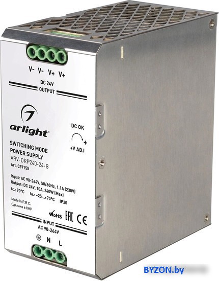 | Информация | Источник напряжения с гальванической развязкой для светодиодных изделий. Входное напряжение 90-264 VAC. Выходные параметры: 24 В, 10 А, 240 Вт. Негерметичный металлический корпус IP 20 для установки на DIN-рейку. Встроенный PFC 0,95 Габаритные размеры длина 125 мм, ширина 113 мм, высота 63 мм. Гарантийный срок 5 лет. |