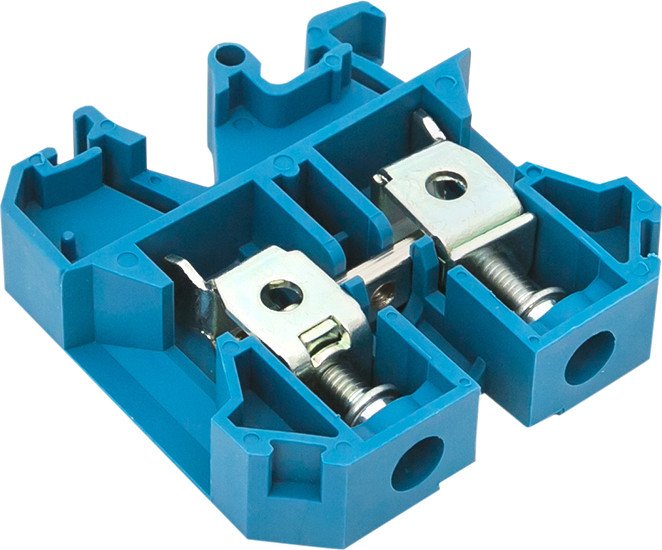 Код товара: 4284944 Рейтинг: 177 8| ном. напряжение 800 В, ном. ток 90 А, корпус: полиамид, соединение: винтовой зажим, 2 точки, сечение одножильных проводников 10-16 кв.мм, сечение многожильных проводников 10-16 кв.мм, цвет: синий
