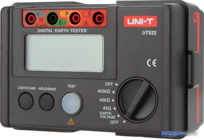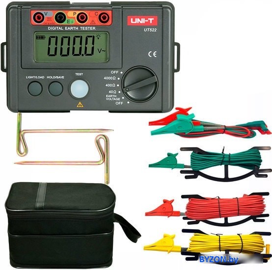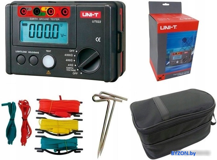 | Информация | Измеритель сопротивления заземления UT522 – это ручной прибор, предназначен для измерения сопротивления заземления, постоянного и напряжения заземления. Оснащён ручным выбором диапазонов измерений. UT522 способен контролировать заряд батареи, при необходимости сообщит вам о недостаточном заряде, для экономии заряда оснащён функцией автоматического отключения. Кнопка «TEST» позволяет запускать и останавливать измерения сопротивления заземления. UT522 технические характеристикиСопротивление заземления0 - 40 Ом ± (2% + 20)0 - 400 Ом ± (2% + 3)0 - 4000 Ом ± (2% + 3)Сопротивление заземления переменного тока (AC) 0 - 400 В ± (1% + 6) / частота 50 Гц - 60 ГцРегистрация данных 20 показаний |