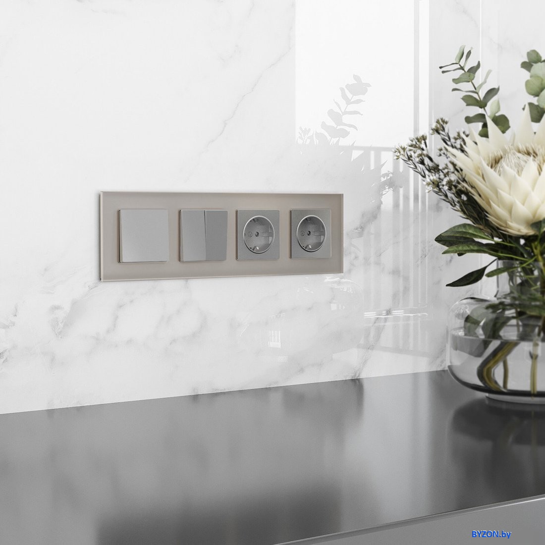 Код товара: 4887454 Рейтинг: 70 2| -26,67 рамка 4-местная, накладной монтаж, стекло, цвет: серый