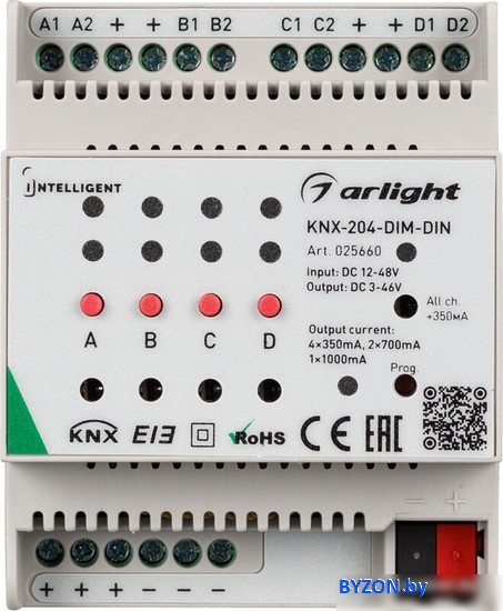 Контроллер RGB Arlight Intelligent KNX-204-DIM-DIN (12-48V, 8x0.35/4x0.7/2x1A) 025660 - купить в Минске
