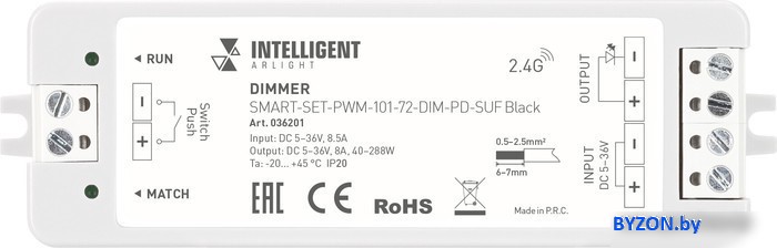 Диммер RGB Arlight Intelligent SMART-SET-PWM-101-72-DIM-PD-SUF Black (5-36V, 1x8A, x4, ПДУ 13кн, 2.4G) 036201 - купить в Минске