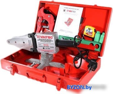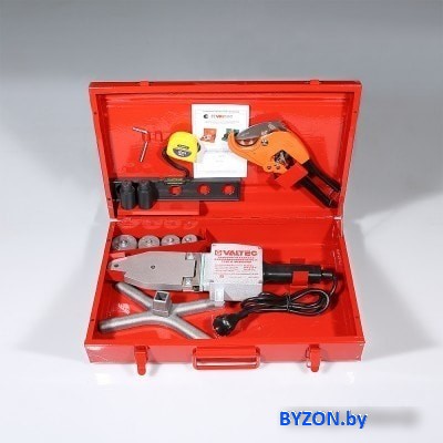 | Комплектация | - Сварочный аппарат.- Крестовидная подставка из алюминия.- Набор насадок 20–40 мм.- Ножницы для резки пластиковых труб.- Инструмент для установки сварных насадок.- Рулетка 2 м.- Уровень и пробки для монтажа водорозеток. |