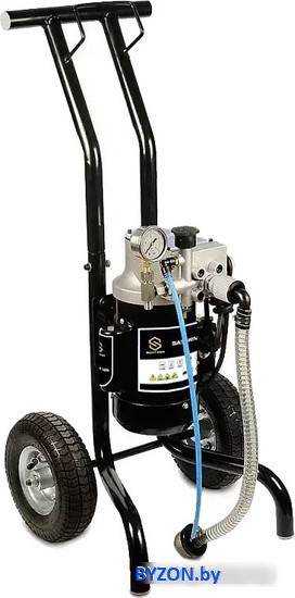 | Комплект поставки | - агрегат окрасочный высокого давления на тележке и с заборным шлангом для краски (комплект); - шланг высокого давления для краски – 15 м.; - безвоздушный краскопульт в комплекте с фильтром в ручке и соплодержателем; - сопло реверсивное безвоздушное; - инструкция. |