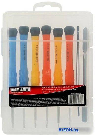 Набор отверток прецизионных BaumAuto BM-303138 (8 предметов) - купить в Минске
