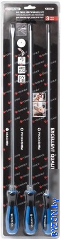 | Комплектация | Набор отверток магнитных, удлиненных силовых под ключ:- SL8х450мм- PH2х450мм,PH3х450мм |