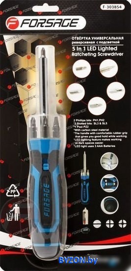 | Комплектация | Отвертка-держатель 250 мм. реверсивная с подсветкой с набором бит: PH1, PH2, PZ2, SL5, SL6 |