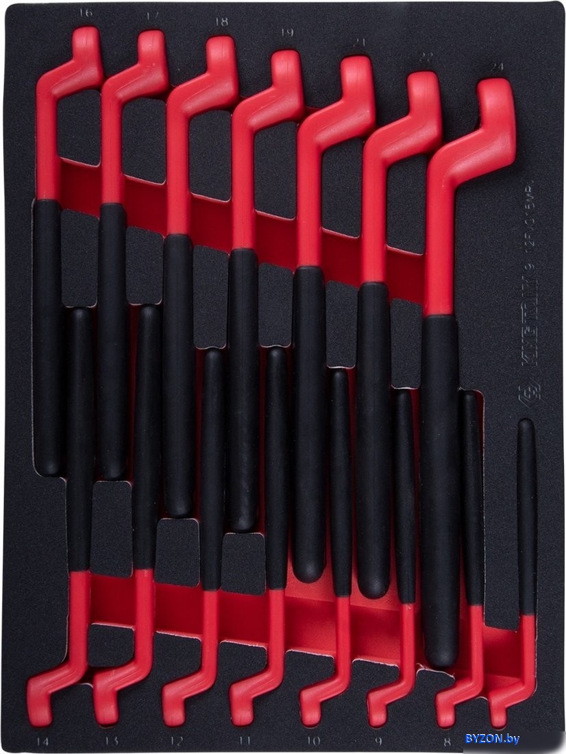 | Комплектация | Ключи накидные диэлектрические (10G0) – 7, 8, 9, 10, 11, 12, 13, 14, 16, 17, 18, 19, 21, 22, 24 мм; Ложемент EVA 280?375 мм, №9 |