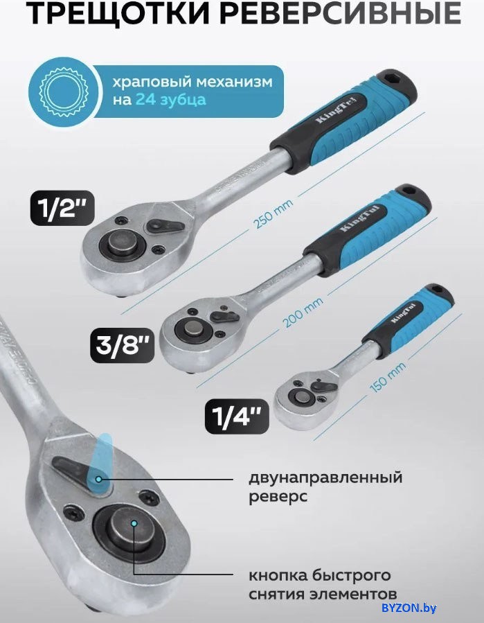 | Трещотка | Да 3 (1/2", 3/8", 1/4") |