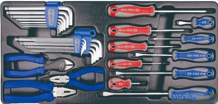 | Комплектация | Отвертки крестовые Phillips, серия 1421 №0 х 60 мм, №1 х 80 мм, №2 х 38 мм, №2 х 100 мм, №3 х 150 ммОтвертки шлицевые Slotted, серия 1422 3 х 75 мм, 5.5 х 100 мм, 6.5 х 38 мм, 6.5 х 100 мм, 6.5 х 150 мм, 8 х 175 ммПлоскогубцы комбинированные, серия 6111-07 длина 180 ммПлоскогубцы тонконосые, серия 6311-06 длина 150 ммБокорезы силовые серии 6231-07 длина 180 ммНабор Г-образных шестигранников с шаровым окончанием KING TONY 20109MR серия 1120MR (метричесие): 1.5, 2, 2.5, 3, 4, 5, 6, 8, 10 ммНабор Г-образных шестигранников с шаровым окончанием KING TONY 20107SR серия 1130SR (дюймовые): 3/32", 1/8", 5/32", 3/16", 1/4", 5/16", 3/8" |